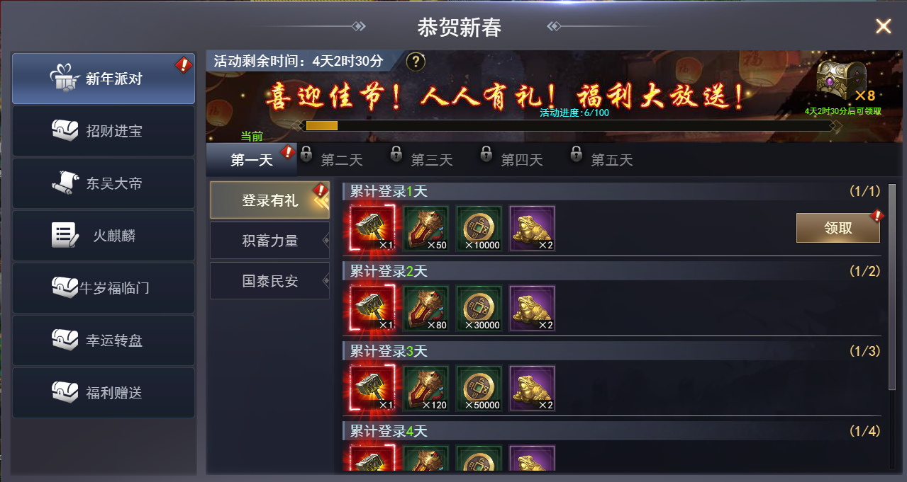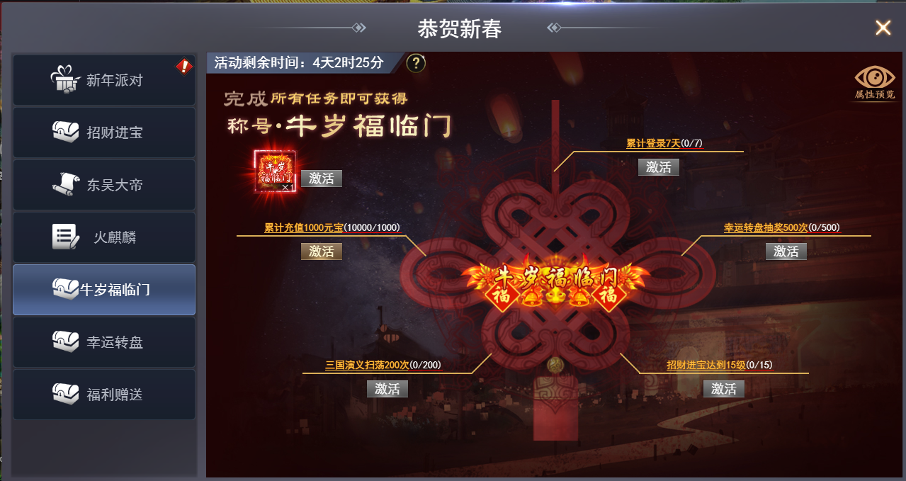 1、完成当前任务,可获得孙权坐骑火麒麟!