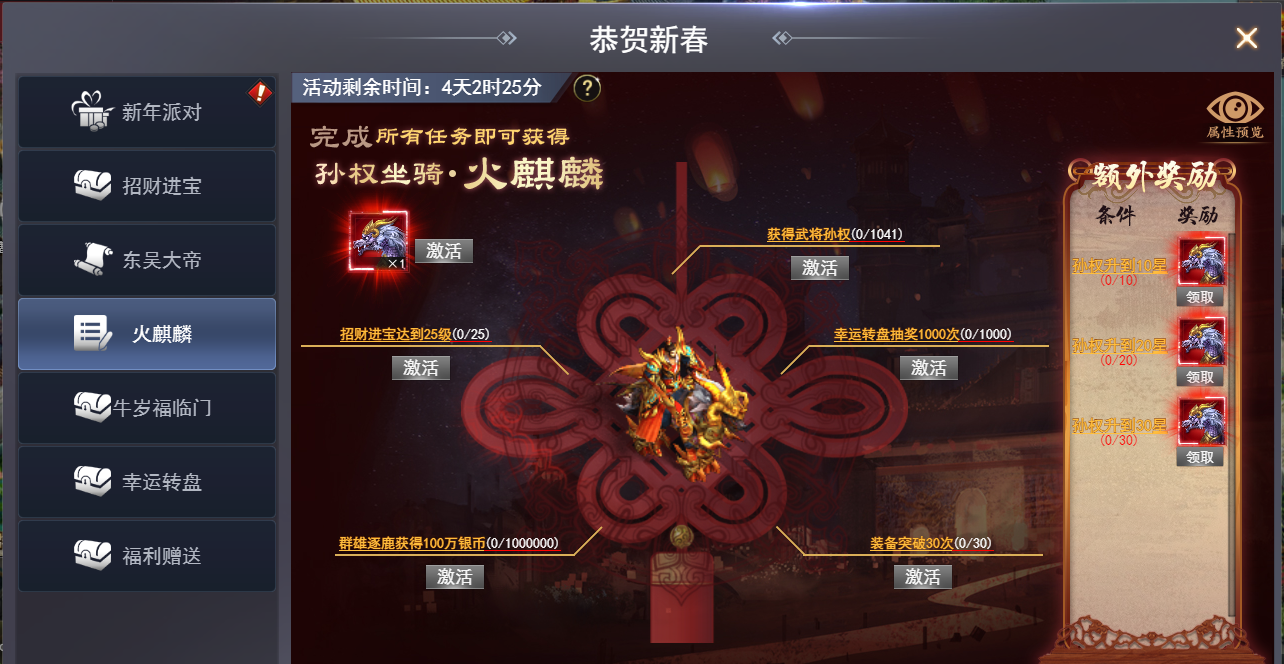 2、孙权升到指定星级可额外获得孙权坐骑火麒麟。
