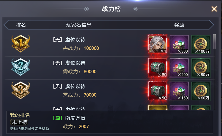 | 竞技场达到3名 | [魂]荀彧 | 50 |