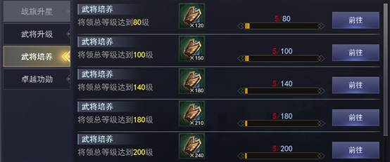 | 将领总等级达到180级 | 突飞令 | 210 |