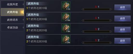 | 1个武将达到30级 | 突飞令 | 100 |